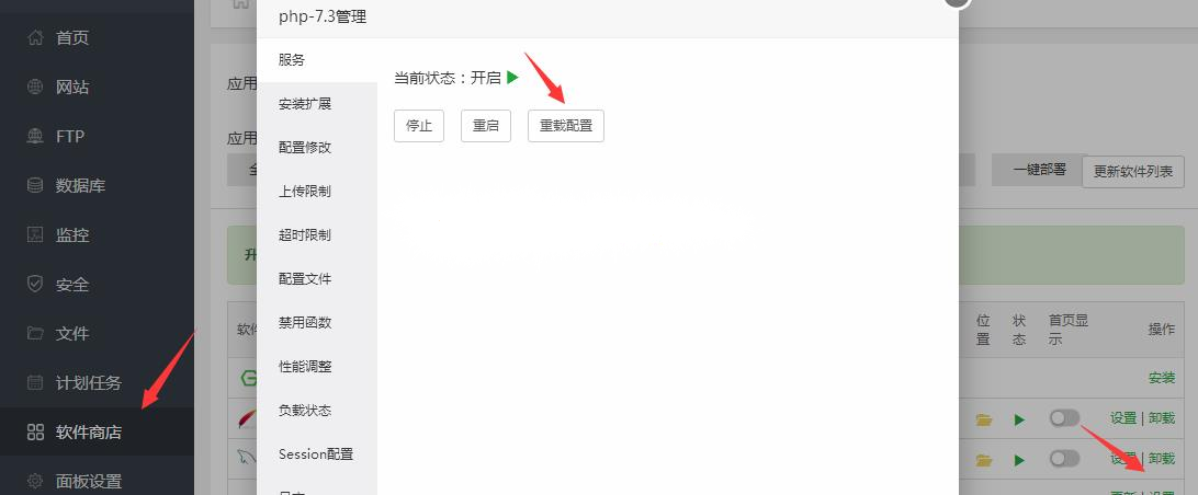 设置后回到相应的php管理里重载配置